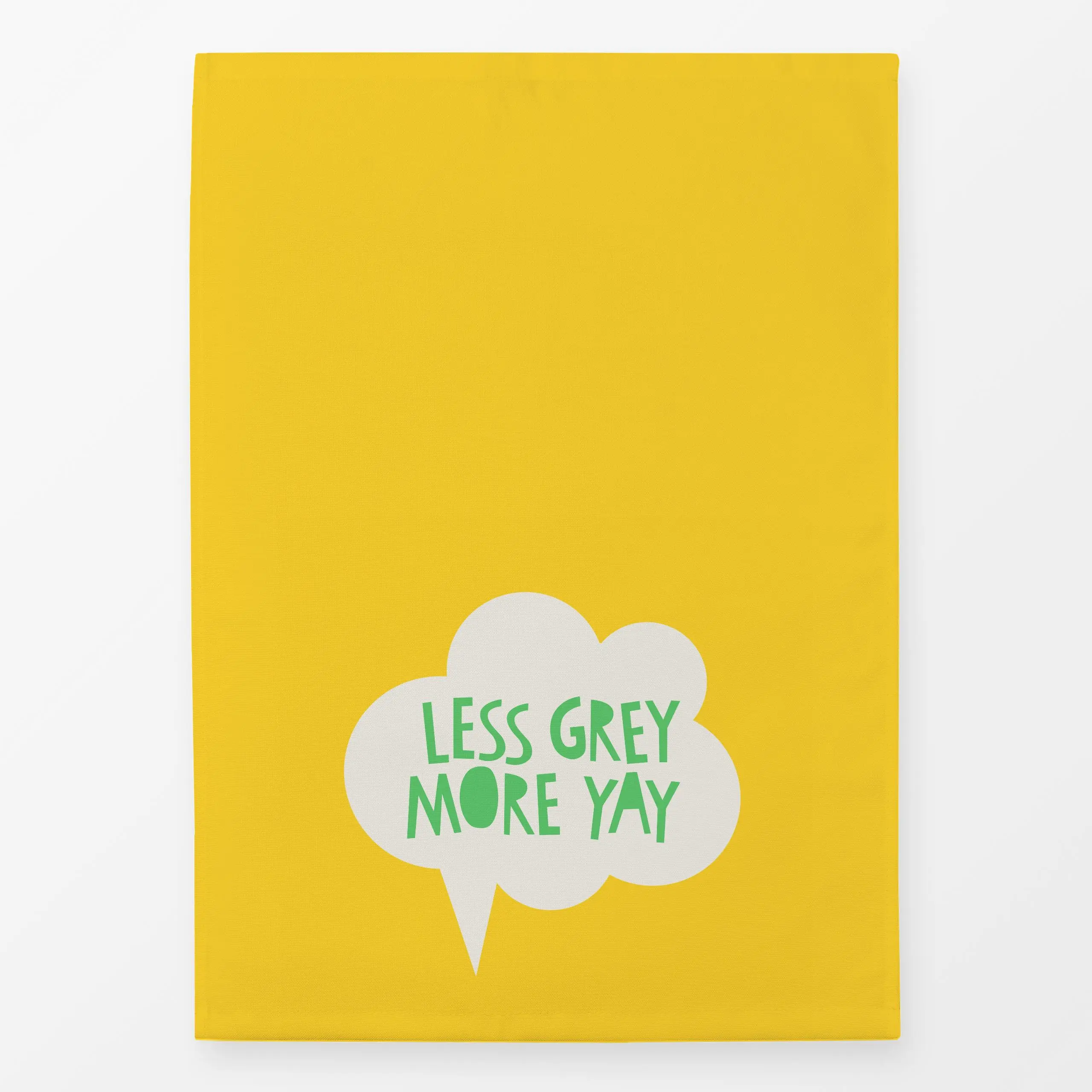 Geschirrtücher Less grey more yay gelb - Frühling, Sprüche & Schriftzüge - von „Kerstin Ax"; verspielt, Sommer, gelb, Letter...