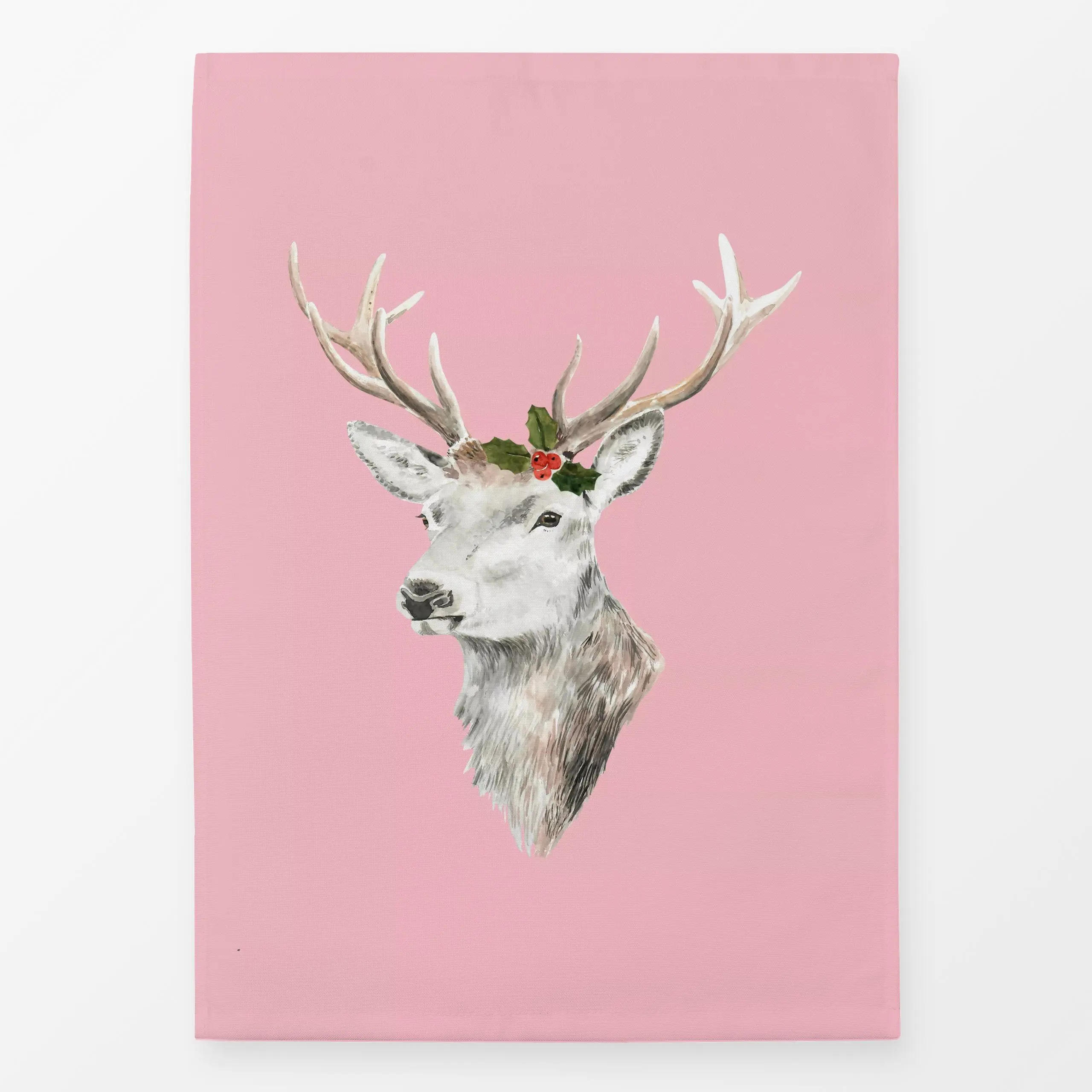 Geschirrtücher Aquarell Hirschkopf pink - Tiere, Weihnachten, Winter - von „Katrin Graff"; Pride, Hirsch, Happy, Geweih, win...