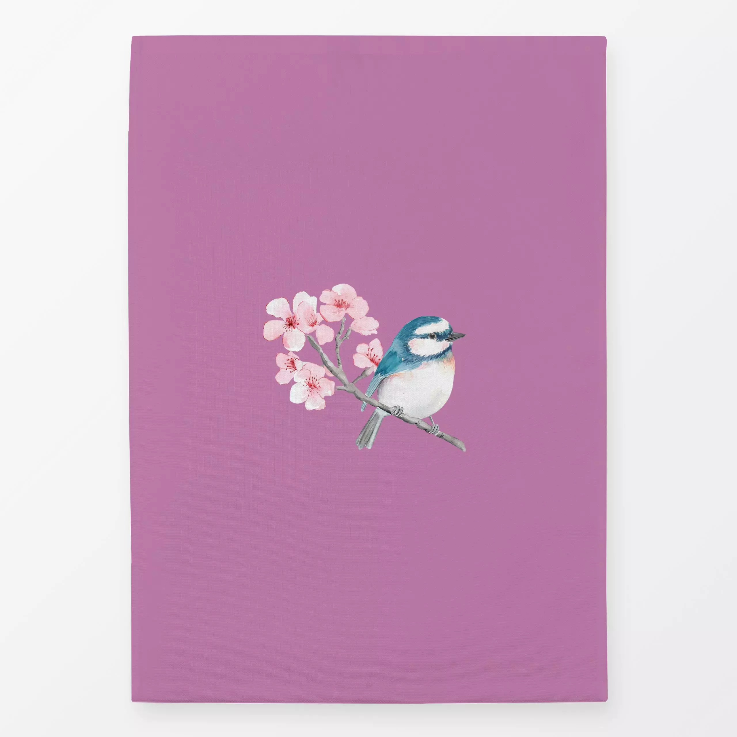 Geschirrtücher Vogel auf Zweig pink - Blumen & Florales, Tiere, Pflanzen & Botanik - von „Katrin Graff"; Vogel, Ostern, Frue...