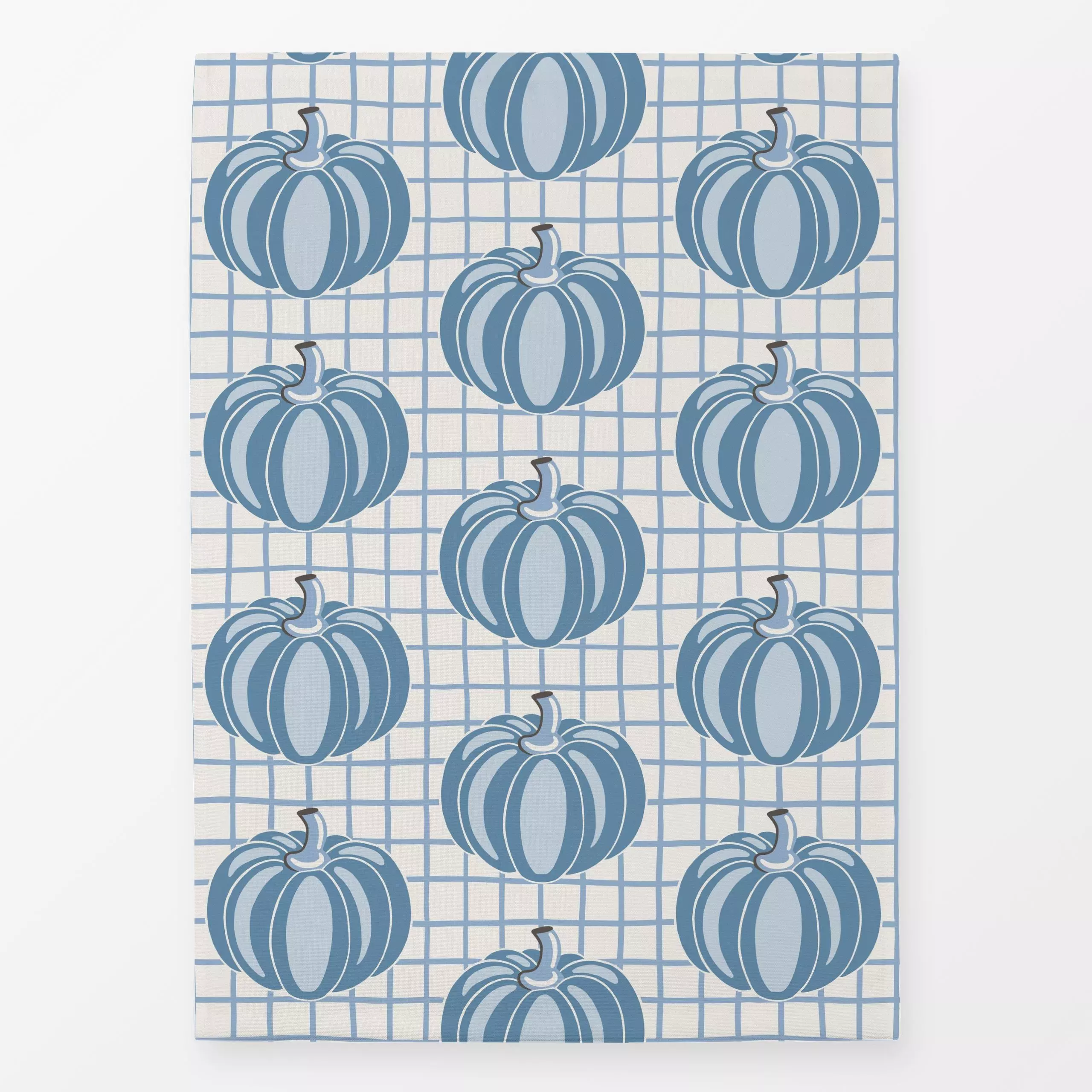 Geschirrtücher Kürbisse auf Karo Blau - Herbst, Symbole & Muster, Gemüse - von „Vivian Hasenclever"; Natur, skandinavisch, H...