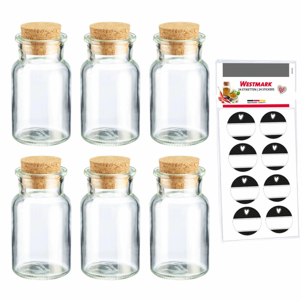 Westmark 6 Gewürzgläser mit Korken, 150 ml + 8 Dekoetiketten, 665722E6