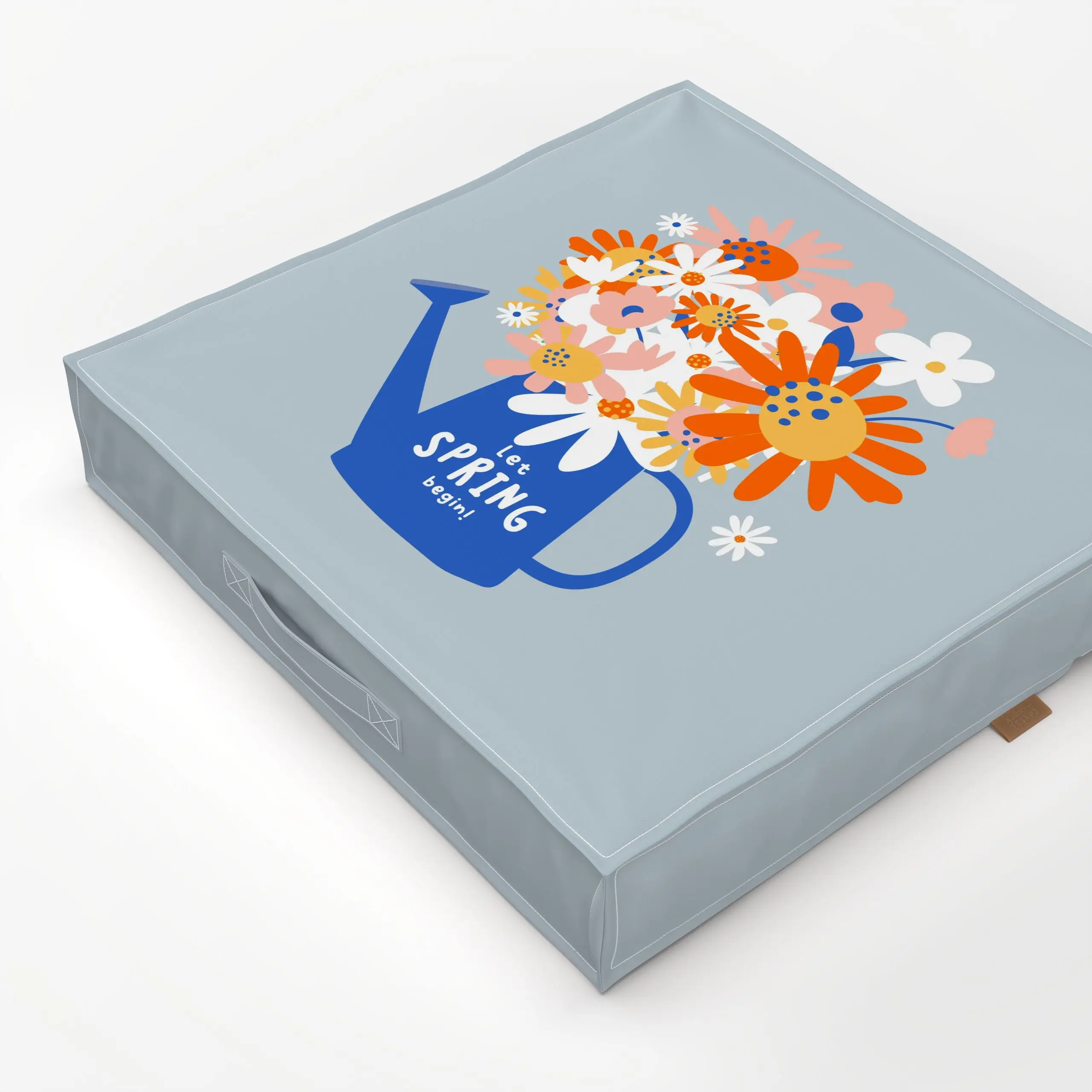 Bodenkissen Giesskanne - Let spring begin - Blumen & Florales, Frühling, Sprüche & Schriftzüge - von „Heyduda"; Pflanzen, Ga...