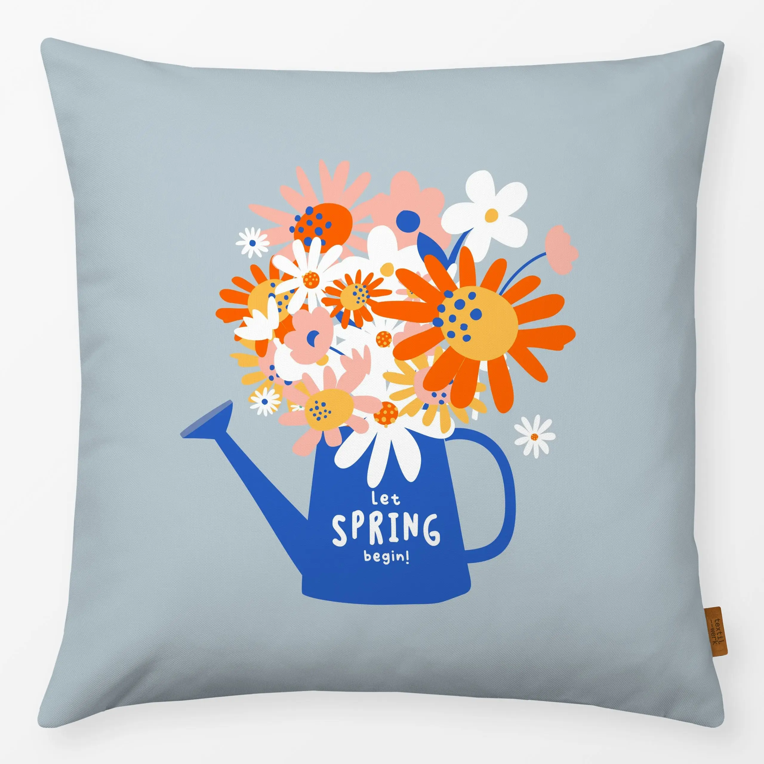 Kissen Giesskanne - Let spring begin - Blumen & Florales, Frühling, Sprüche & Schriftzüge - von „Heyduda"; Pflanzen, Garten,...