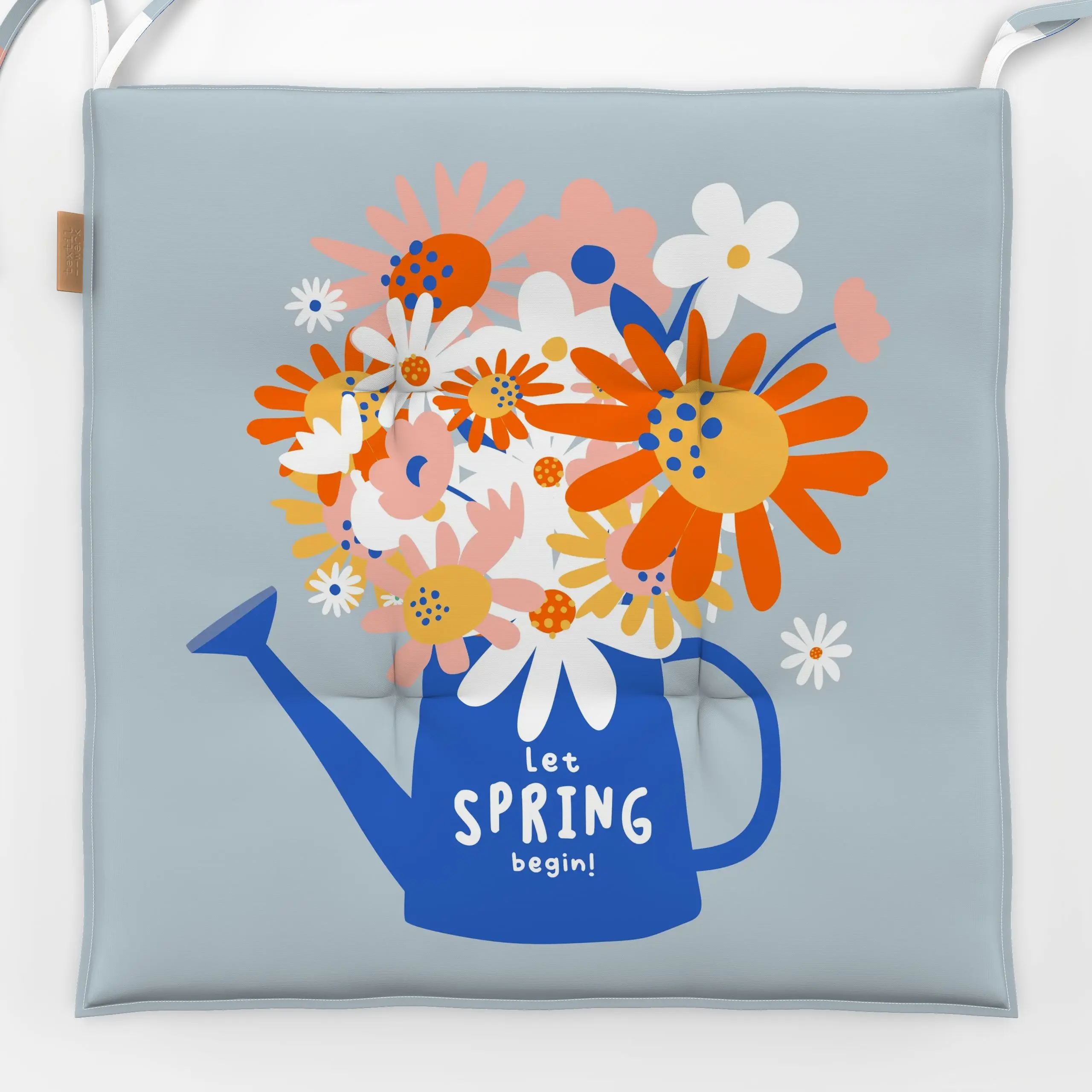 Sitzkissen Giesskanne - Let spring begin - Blumen & Florales, Frühling, Sprüche & Schriftzüge - von „Heyduda"; Pflanzen, Gar...