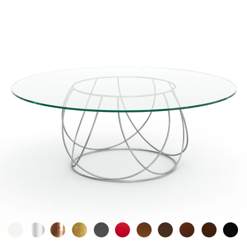 Runder Esstisch für 6 Personen aus gehärtetem Glas und schwarzem Metall - Transparent - COSIMA