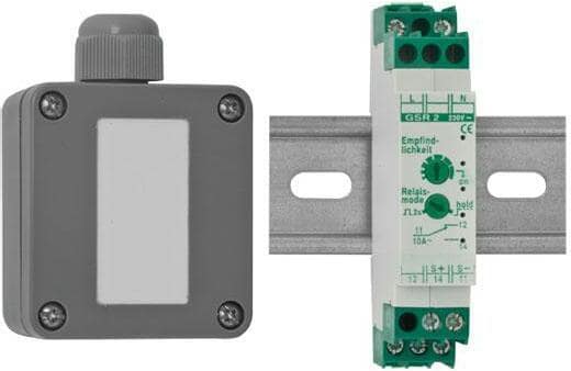Kaiser Nienhaus 336400 Grenzwertschalter Regen, für DIN-Hutschiene, inkl. Regensensor mit Befestigungs-Winkel