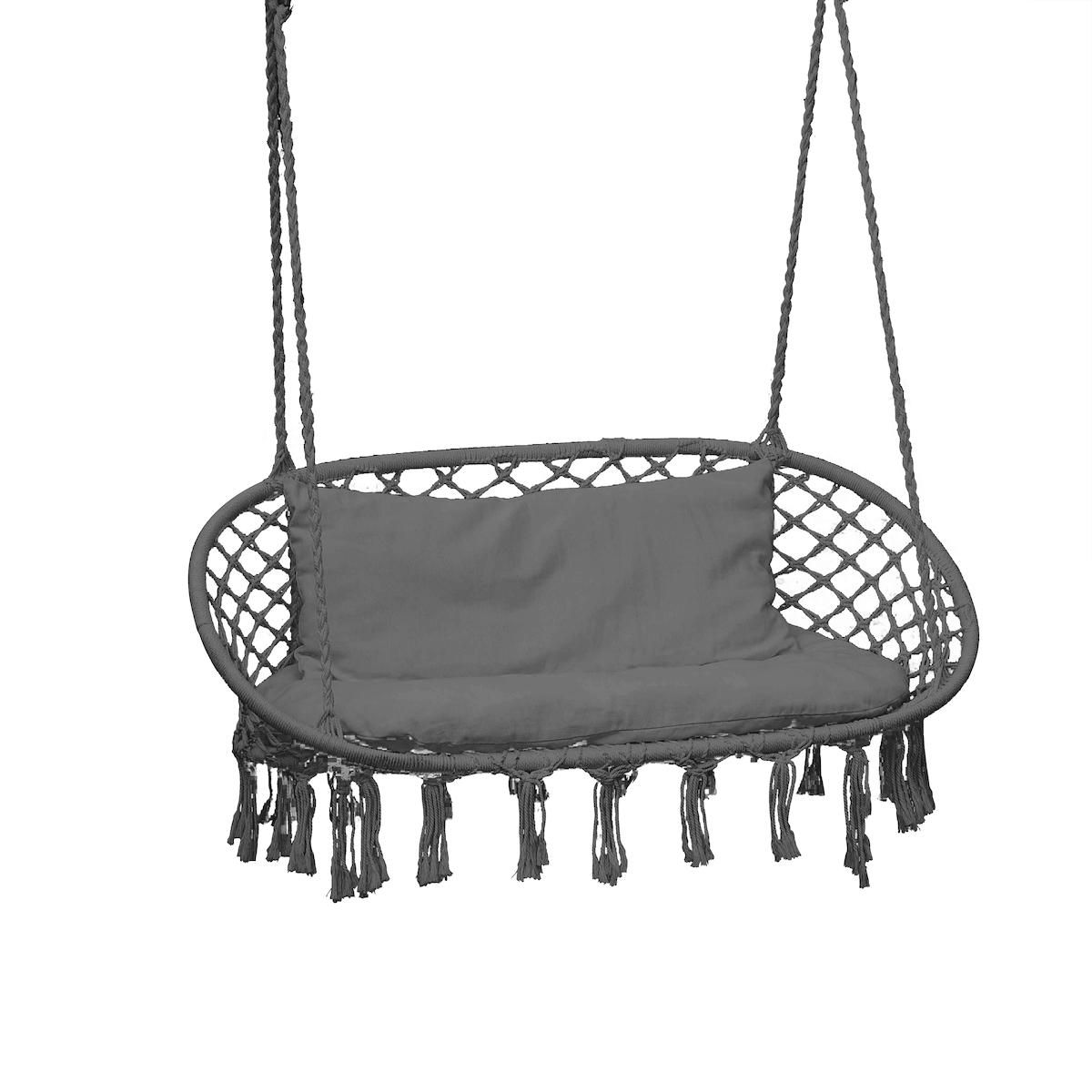 Lex Doppel Hängesessel mit Kissen Hängekorb Hängeschaukel Hängematte Schwebesessel Dunkelgrau : Dunkelgrau