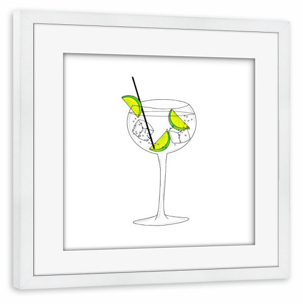 Poster mit Rahmen weiß "Cocktail Hugo" artboxONE - Menschen,Essen & Trinken / Alkohol - Zitrone,Cocktail,Getränk,Minimal