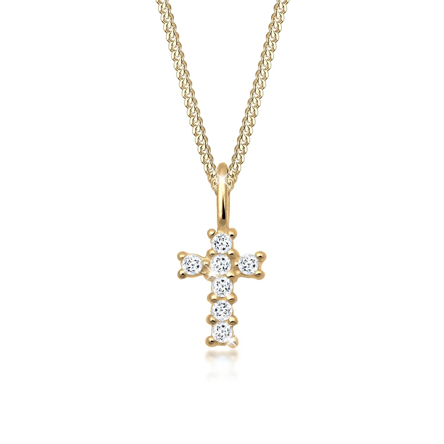 Elli Halsketten - Halskette Kreuz Religion Diamanten (0.03 ct.) 585 - Gr. unisize - in Gelbgold - für Damen und Herren