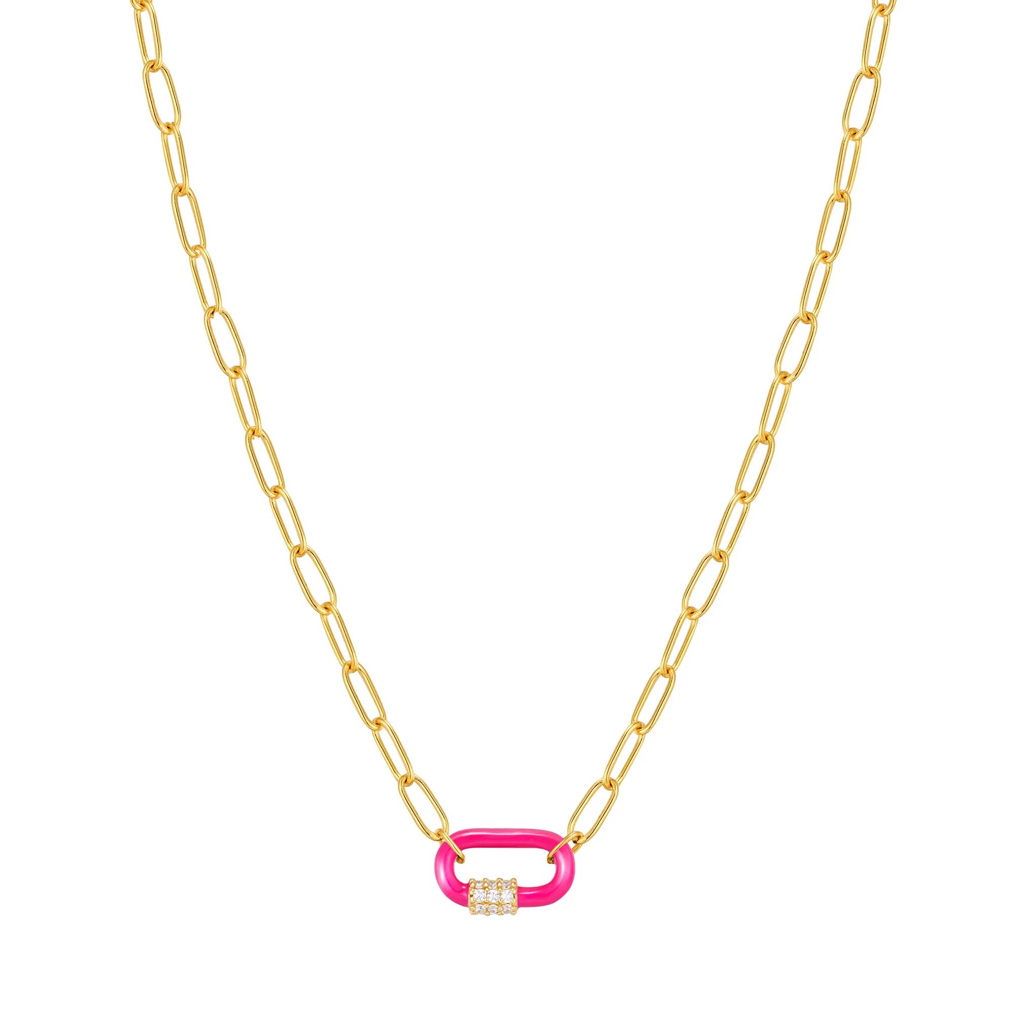 Ania Haie Halsketten - 925er Sterlingsilber Neon Pink Carabiner - Gr. unisize - in Rosa - für Damen und Herren