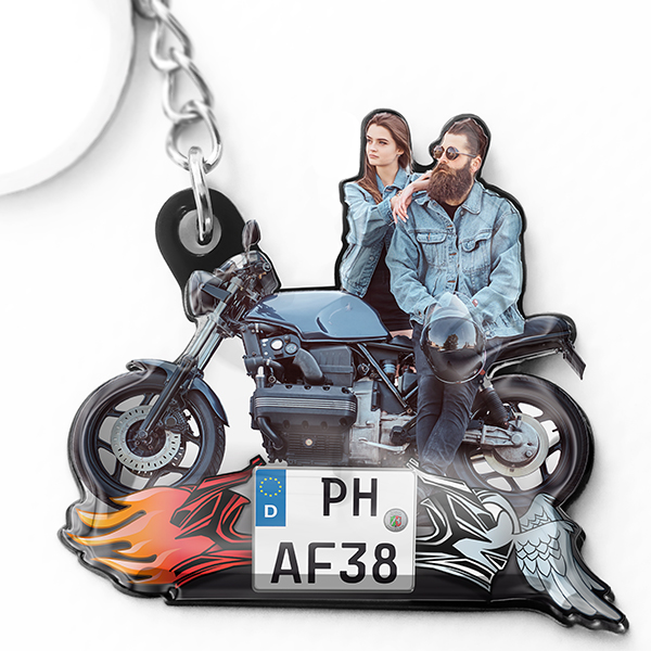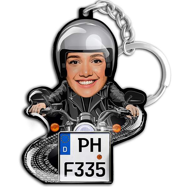 Motorrad Schlüsselanhänger mit personalisiertem Nummernschild und eigenem Foto - Schönes Geschenk für die Freundin und individuelle Erinnerung
