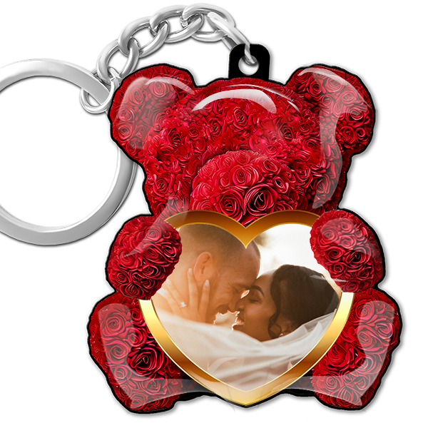 Exklusiver Rosenbär Schlüsselanhänger mit Foto - Individuelles Geschenk für die Liebe deines Lebens und einzigartige Fotogeschenke - auto4style