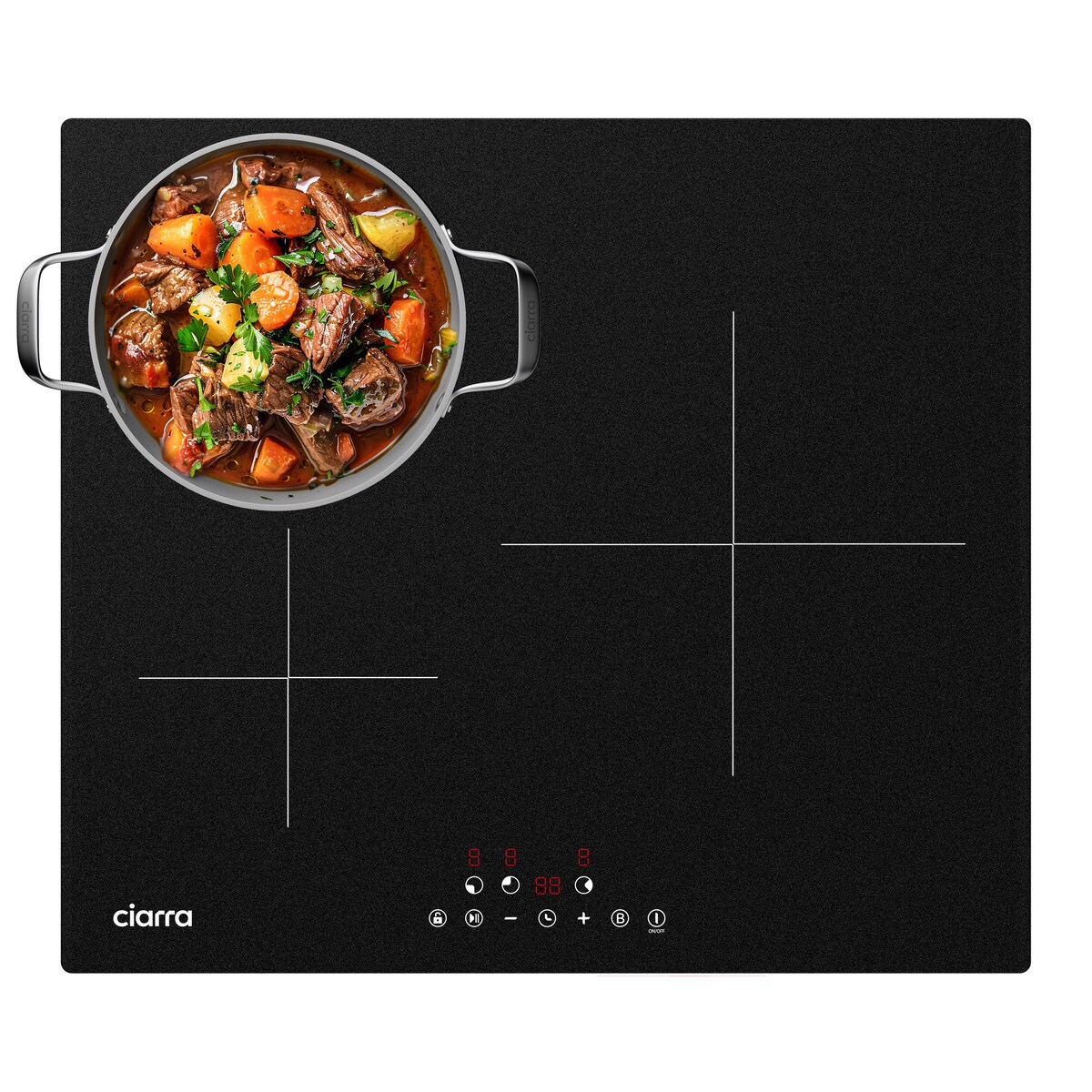 CIARRA Induktions-Kochfeld 60cm Einbau-Kochfelder 3-Zonen Induktionskochfeld mit Timer VM3BIH