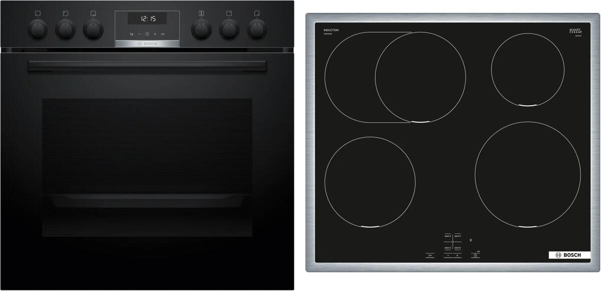 Herdset Bosch Backofen Kindersicherung mit Induktionskochfeld Booster autark 60 cm