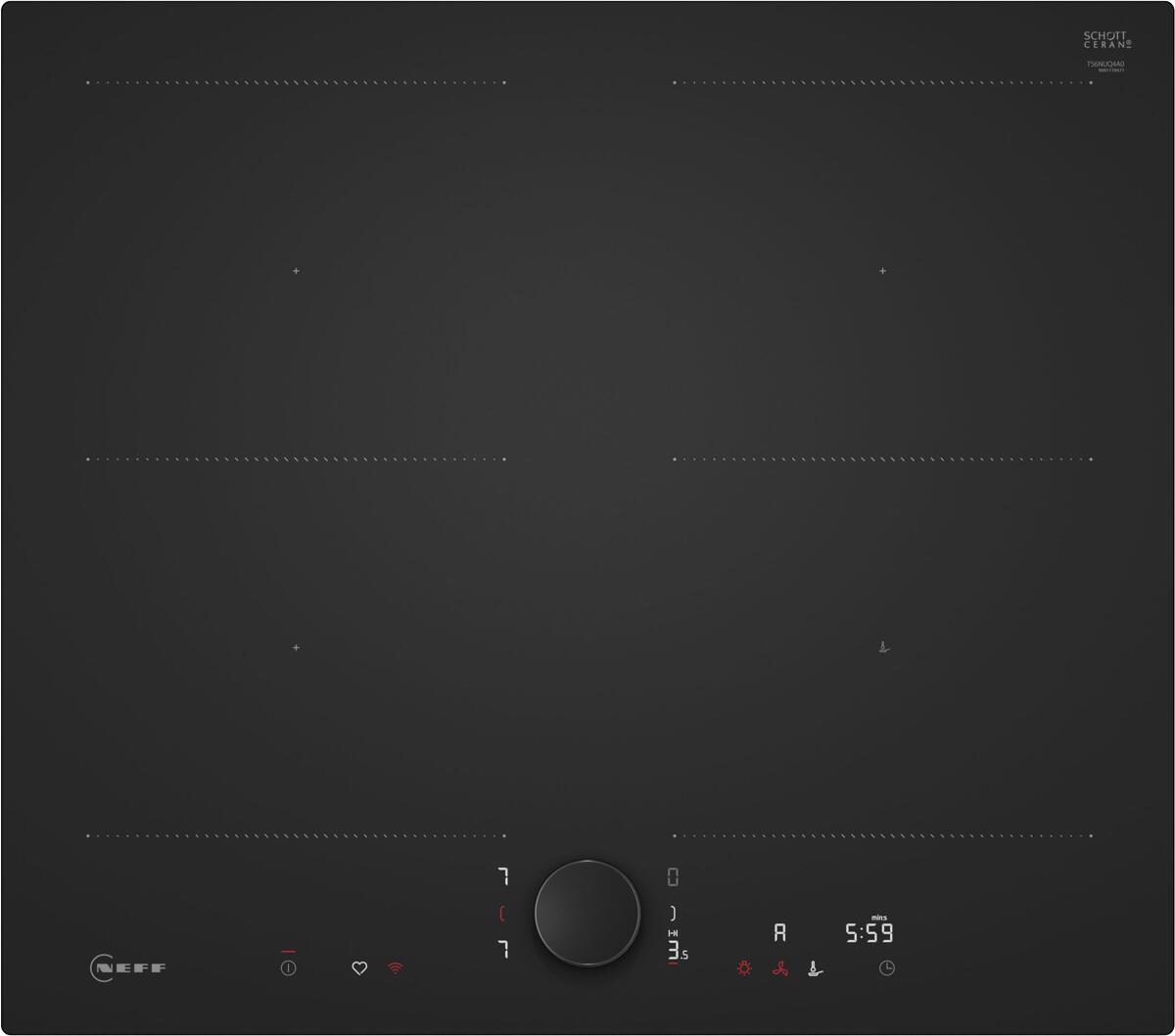 Neff T56NUQ4A0 N90 Induktionskochfeld, 60 cm breit, WLAN, 17 Leistungsstufen, TwistPad, Rahmenlos, Mattschwarz
