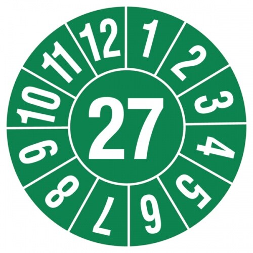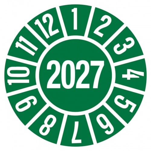 Jahresprüfplaketten ab 27, Jahresfarben, Dokumentenfolie, Ø 10 - 30 mm - Boge...