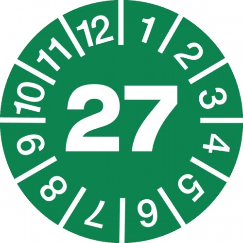 König Werbeanlagen Jahresprüfplaketten ab 27, 2-farbig 2 Jahreszahlen, Folie, Ø 30 mm - Bogen = 10 Plaketten - 30 mm Folie selbstklebend