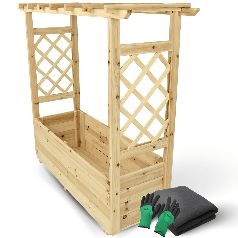 DELUKE Hochbeet mit Rankgitter THAO Inkl. Vlies & Handschuhe, Pflanzkasten mit Rankhilfe Blumenkasten für Kletterpflanzen hängende Körbe, 98cm Breit