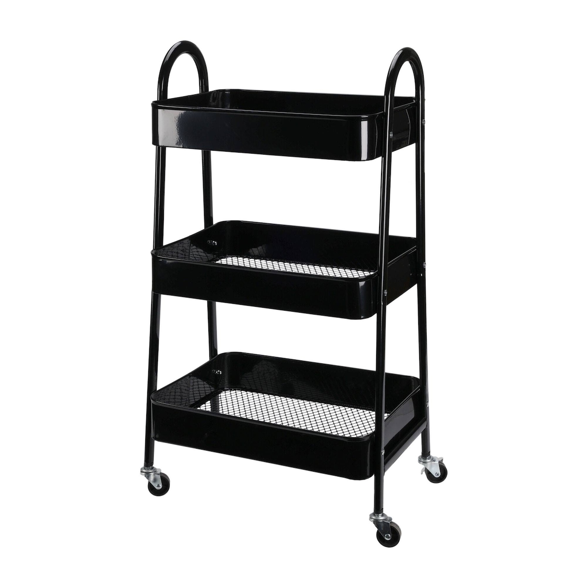 WellHome - Schwarzer Küchenwagen mit 3 Körben und Rädern 79,5cm