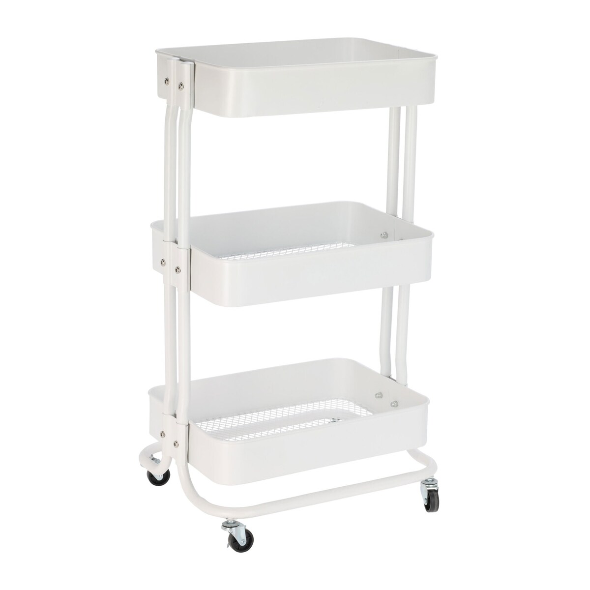 WellHome - Weißer Küchenwagen aus Eisen mit Rädern und 3 Schubladen 46x33x76cm