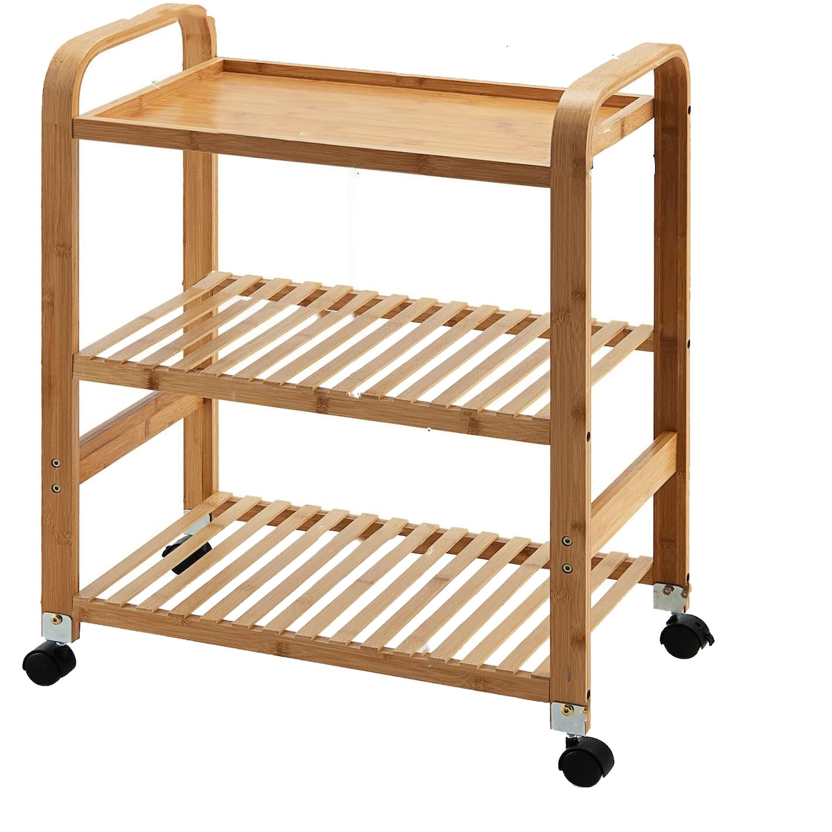 COSTWAY Bambus Servierwagen auf Rädern, Küchenwagen mit 3 Regalen & Griffe, Aufbewahrungshalter mit abnehmbaren Rädern