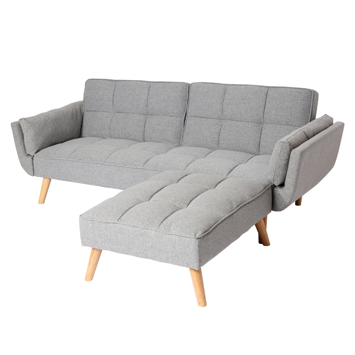 Mendler Schlafsofa HWC-K18 mit Ottomane, Couch Sofa Gästebett, Schlaffunktion 218x175cm ~ Stoff/Textil hellgrau