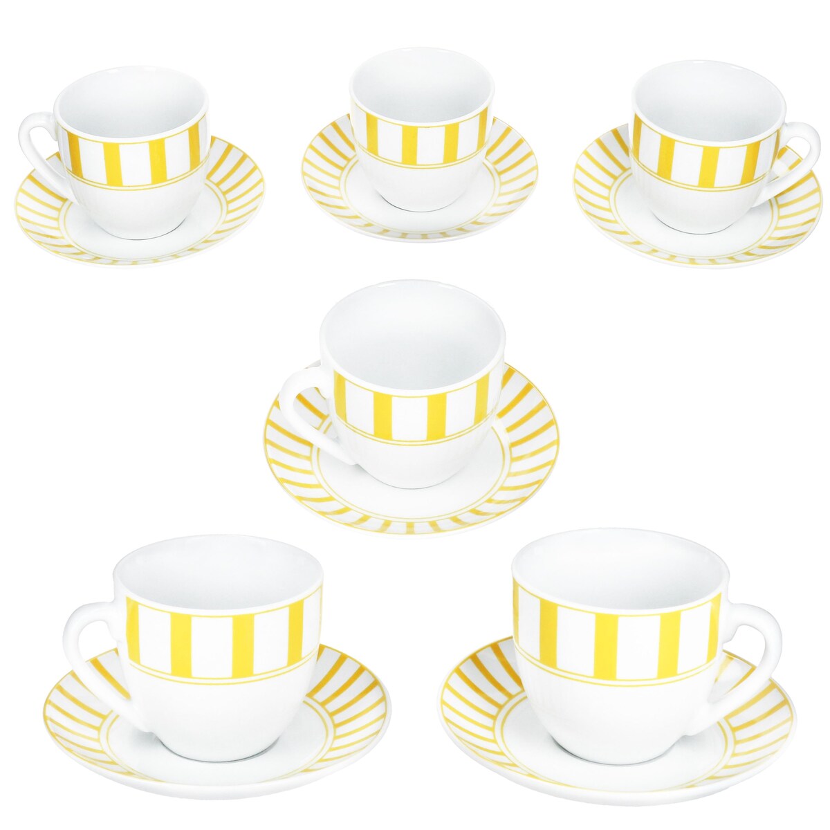 Split gelb Kaffeetassen mit Untertassen für 6 Personen Porzellan Streifen Tee