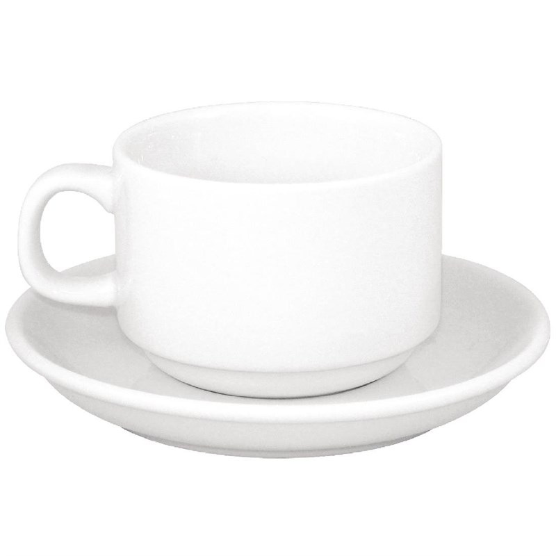 Olympia Whiteware niedrige Kaffeetassen + Untertassen - 20cl - 12 Sets