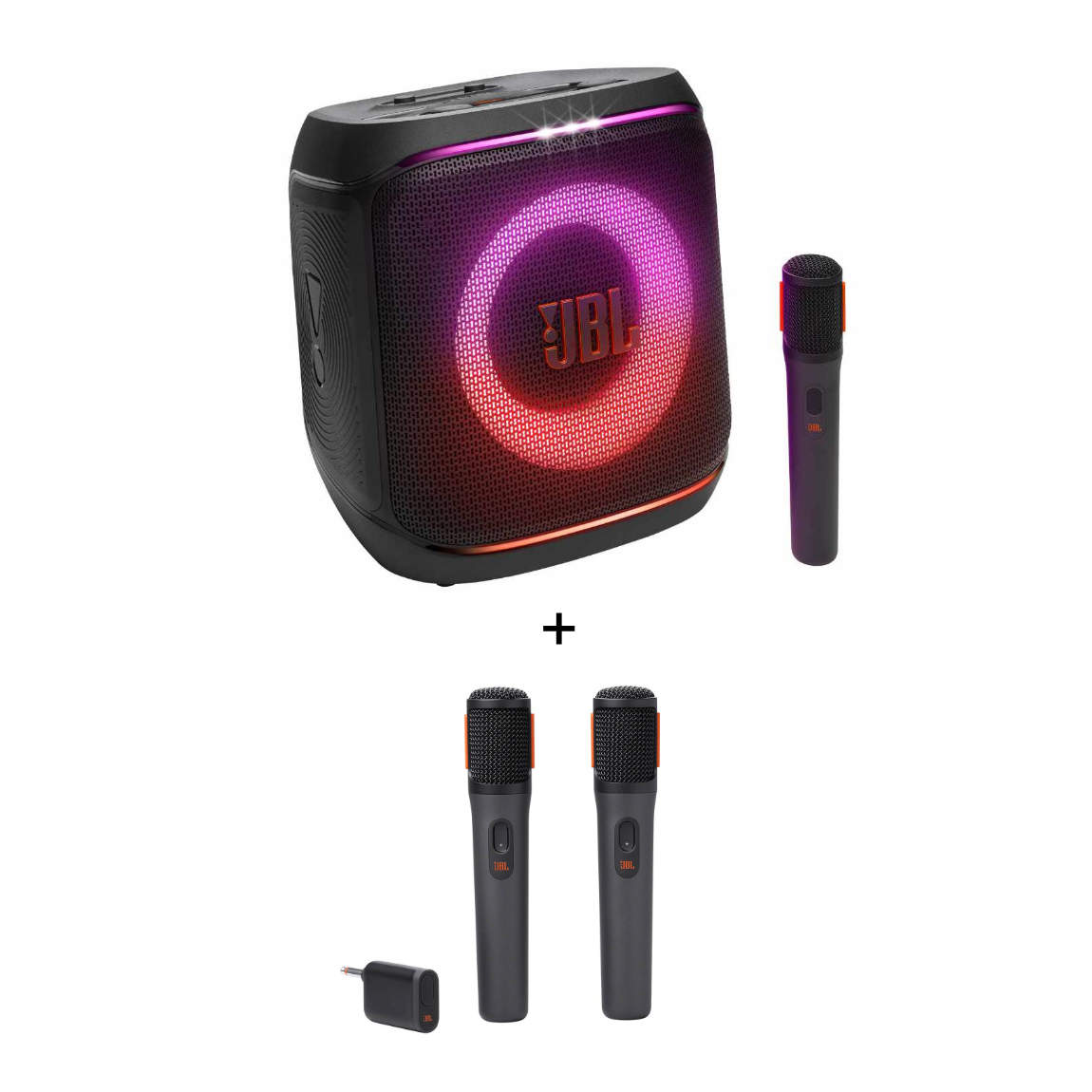 JBL PartyBox ENCORE 2 - Tragbarer Karaoke-Lautsprecher mit Mikrofon + Wireless Microphone Set
