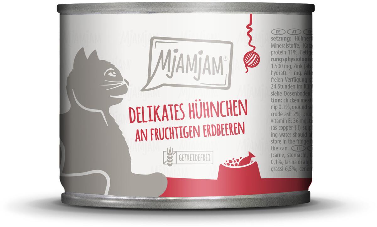 Mjamjam Katzenfutter mit Huhn & Erdbeere, 6x200g