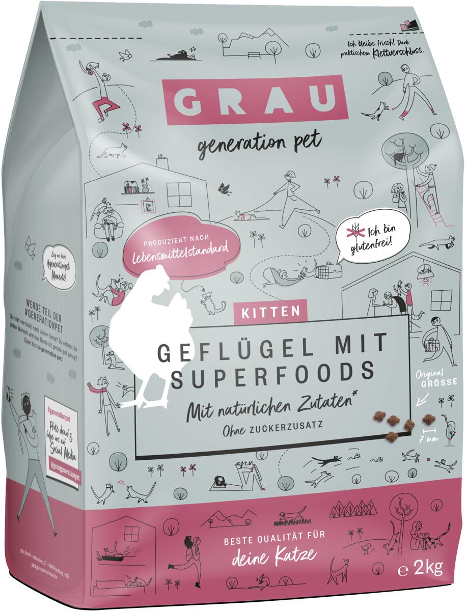 GRAU Kitten | Geflügel mit Superfoods | 2 kg glutenfreies Katzenfutter