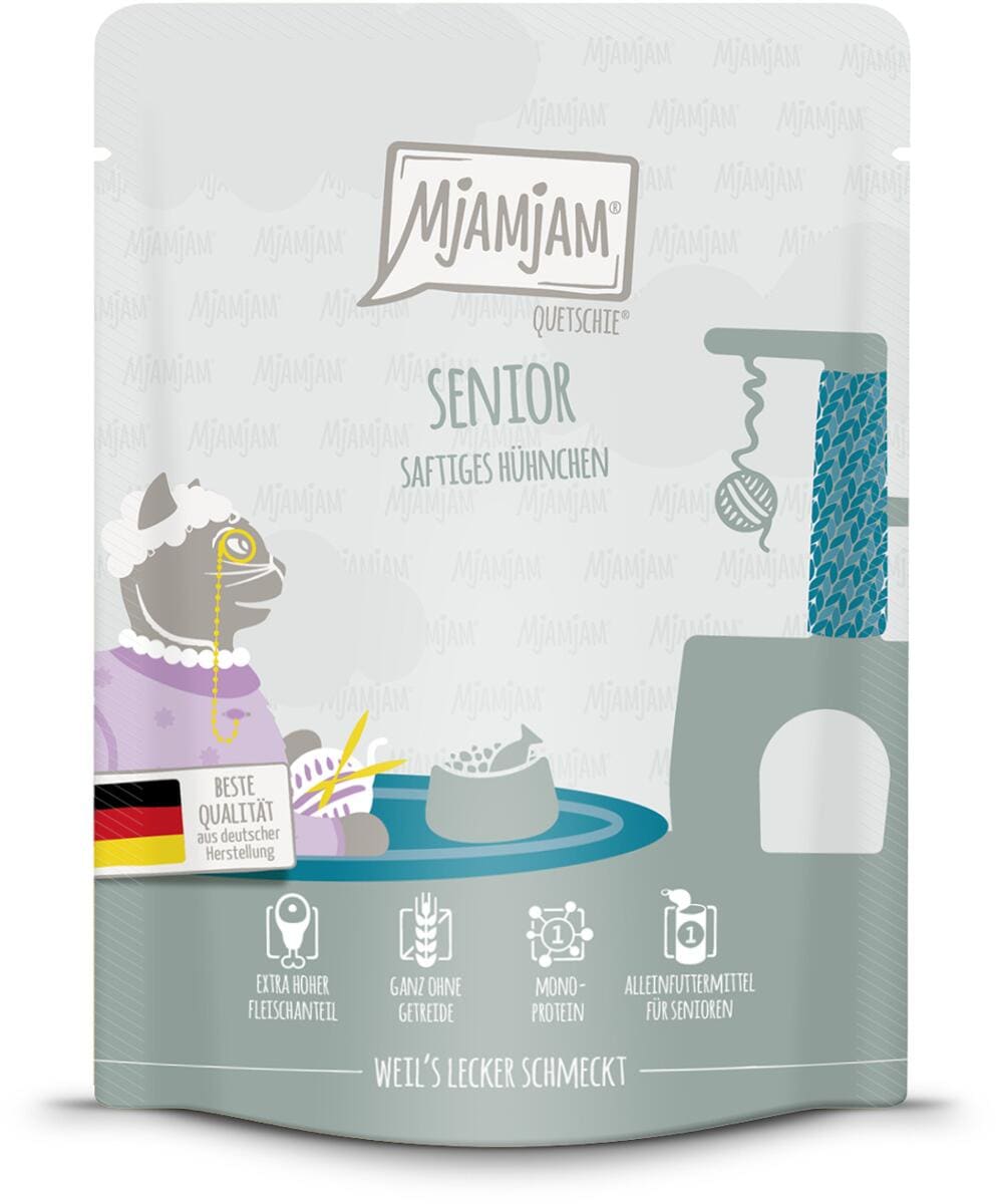 Mjamjam Quetschie Senior Katzenfutter mit Huhn, 6x300g