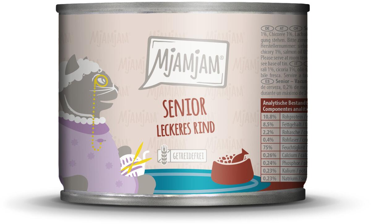 Mjamjam Senior Katzenfutter mit Rind, 6x200g