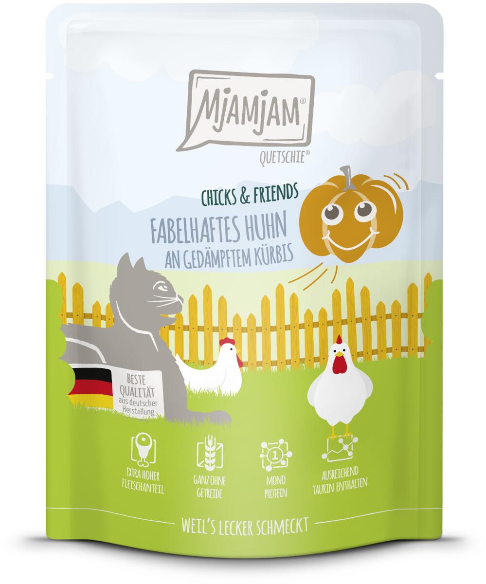 Mjamjam Chicks & Friends Katzenfutter mit Huhn & Kürbis, 6x300g