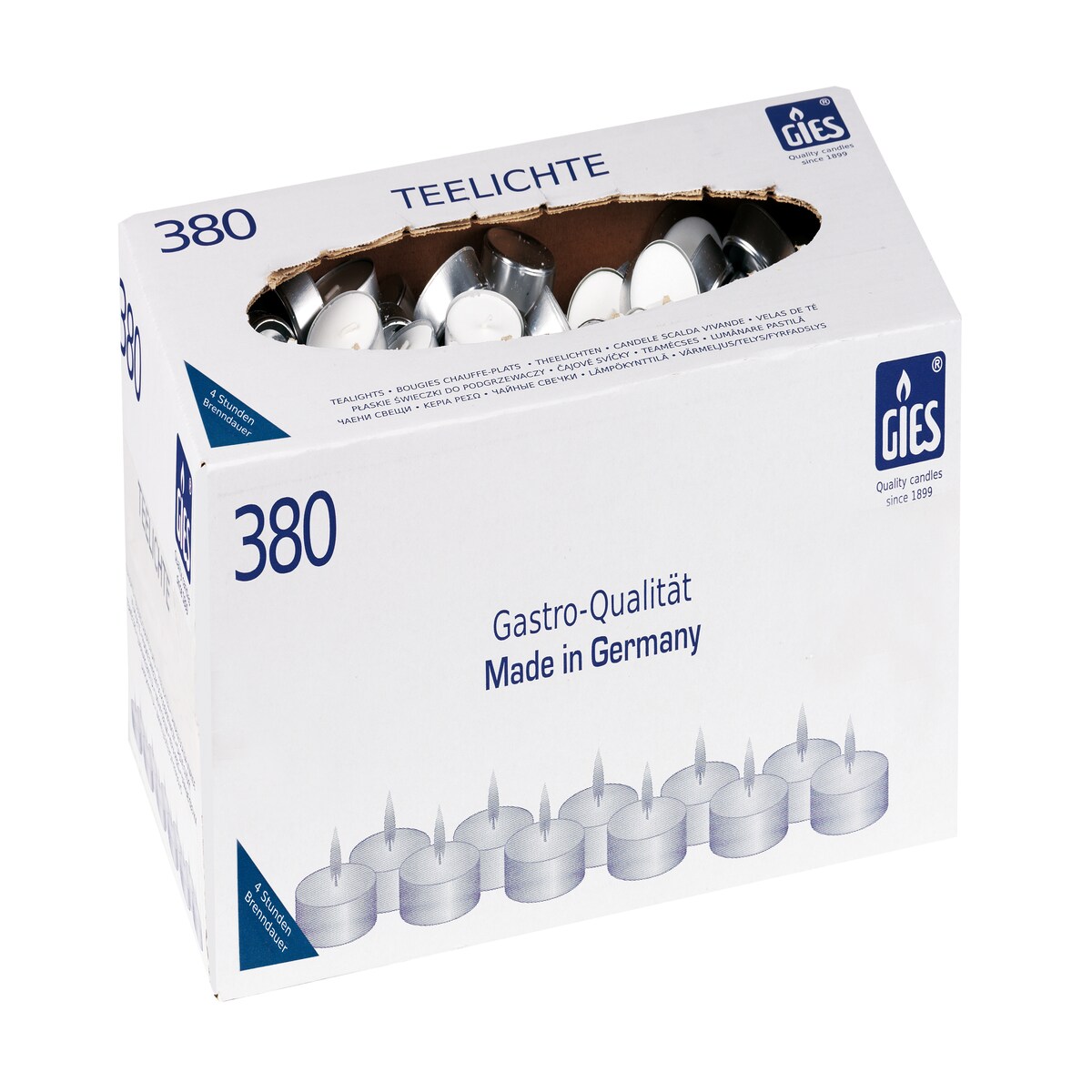 Gies Kerzen Gies Teelichte, Ø 38mm, in Metallhülsen, 380er-Karton weiss