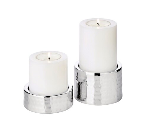 EDZARD 2er Set Kerzenhalter Luca, Edelstahl gehämmert hochglanzpoliert, ø 7,5 cm, Höhen 2,5 + 5 cm