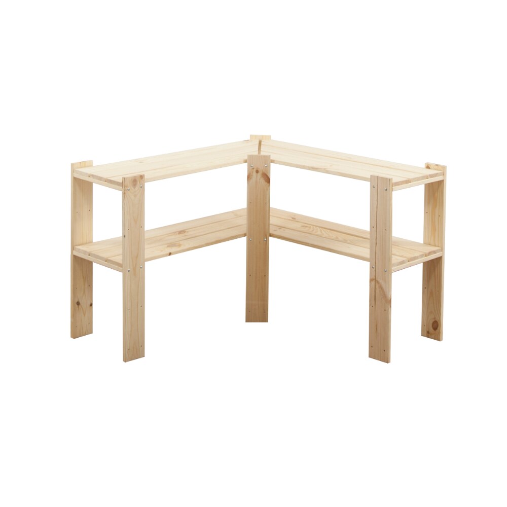 PROREGAL Eckregal WOODLAND | HxBxT 64x85x30cm | Fachlast 120kg | 2 Fachboden | Kiefernholz | Natur | Holzregal Bücherregal Küchenregal
