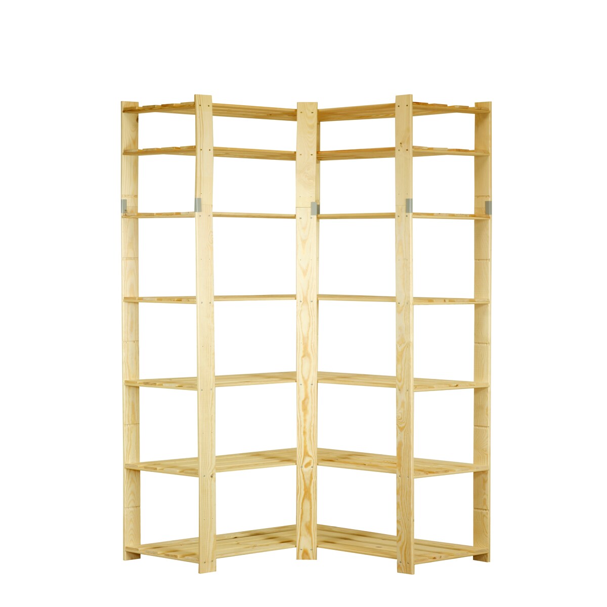 PROREGAL Eckregal WOODLAND | HxBxT 166,4x85x30cm | Fachlast 120kg | 5 Fachboden | Kiefernholz | Natur | Holzregal Bücherregal Küchenregal