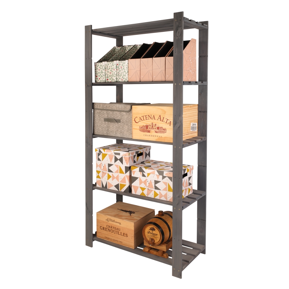 PROREGAL Holzregal PINEPEAK | HxBxT 170x80x38cm | 5 Fachboden | 1,2cm dickes Kiefernholz | Grau | Bücherregal Küchenregal