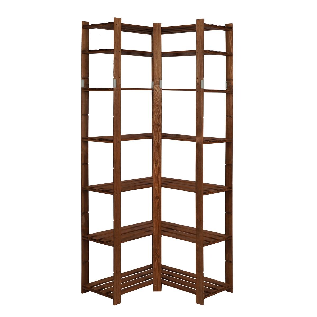 PROREGAL Eckregal PINEPEAK | HxBxT 220x85x38cm | 7 Fachboden | 1,2cm dickes Kiefernholz | Braun | Bücherregal Küchenregal