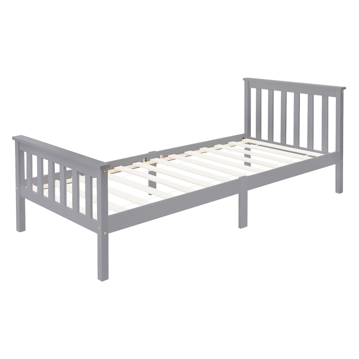 ML-Design Holzbett 90x200 cm Hellgrau – Kiefernholz Massivholzbett mit Lattenrost & Füßen, Einzelbett mit Kopf- & Fußteil, Jugendbett für Kinder &