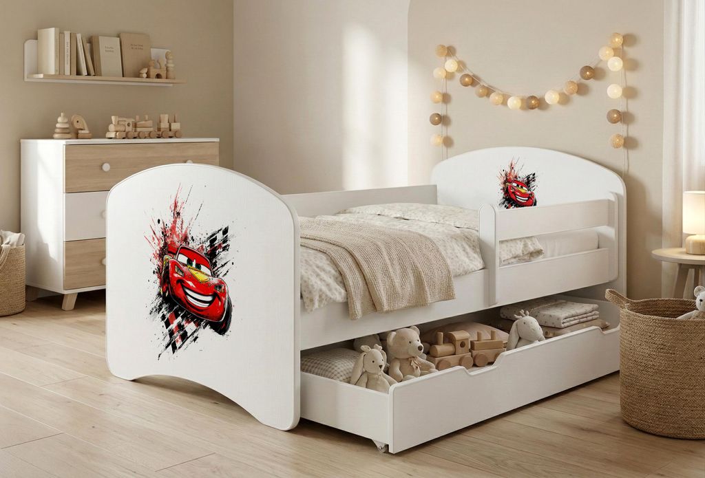 Happy Babies Kinderbett mit Rausfallschutz Junge 140x70 Bett für Kinderzimmer mit Schublade Matratze Einzelbett für Kinder Weiss, Auto | Autos | ...