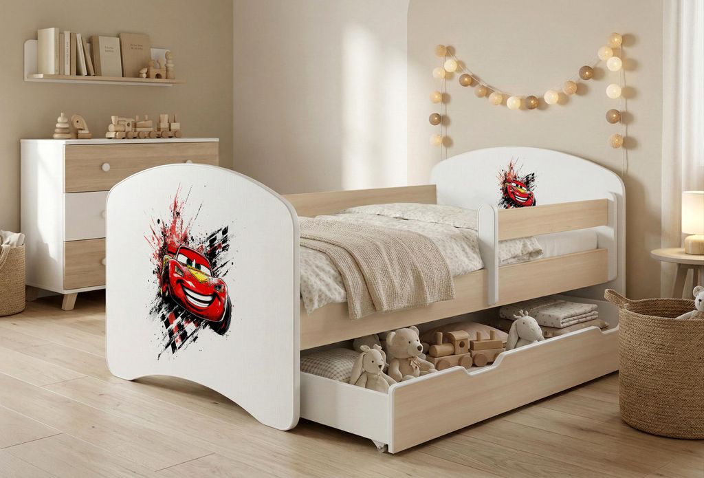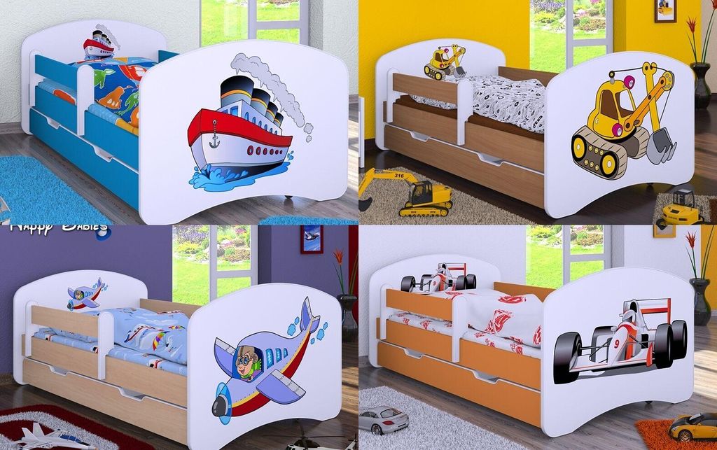 Happy Babies Kinderbett mit Rausfallschutz Junge 140x70 Bett für Kinderzimmer mit Schublade Matratze Einzelbett für Kinder Birne, Auto | Autos | ...
