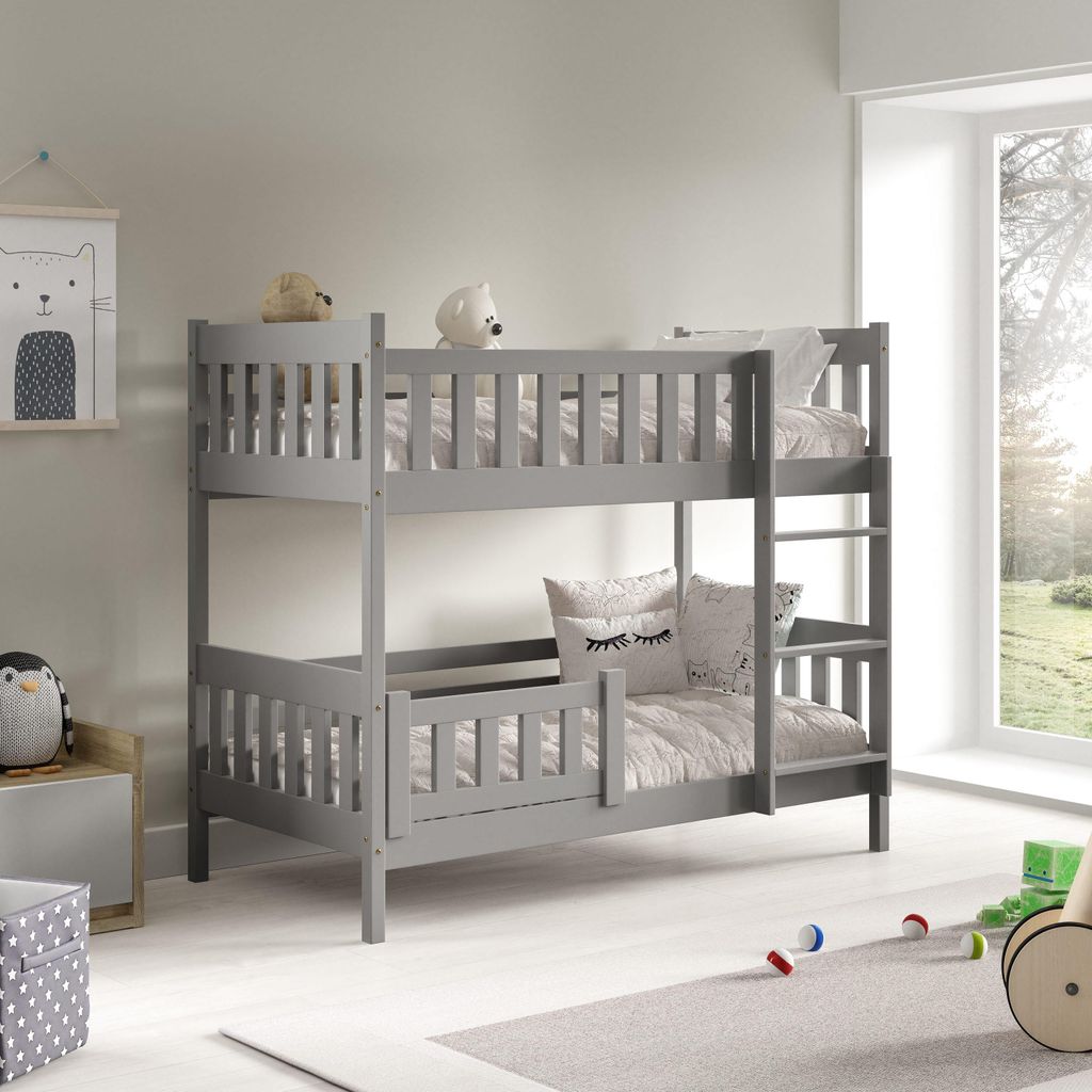 Masseno Etagenbett LUCIA 80x160 cm mit Rausfallschutz, Kinderbett mit Leiter für Mädchen und Jungs, Stockbett 2 Kinder, Holz, Hellgrau