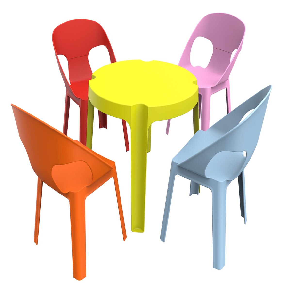 Resol garbar JULIETA Kinderstuhl-Tisch Indoor, Outdoor Set 4+1 Himmelblau/Rosa/Rot/Orange/Limettengrün