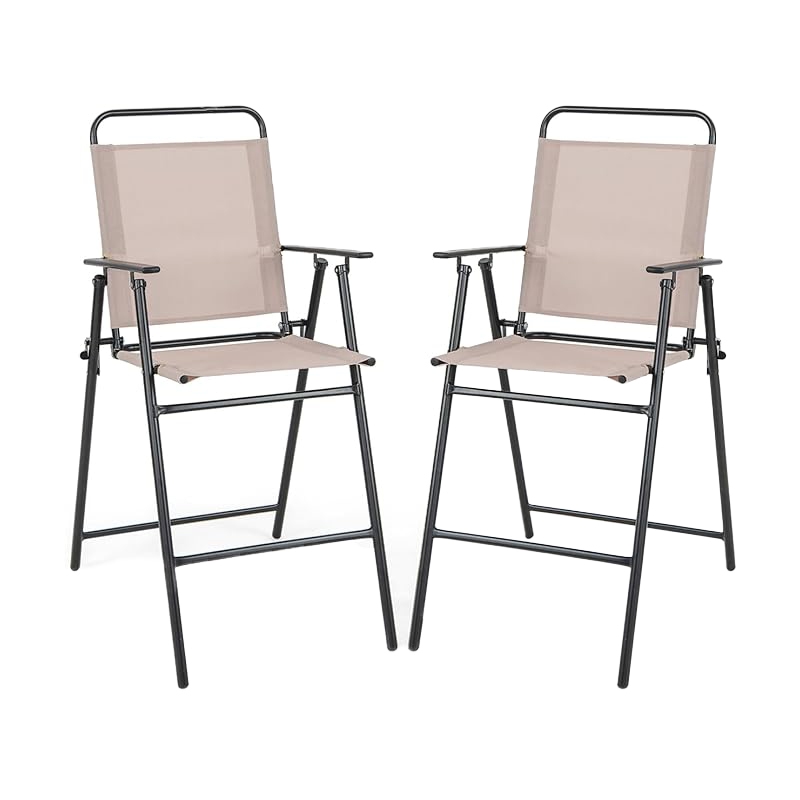 COSTWAY Set mit 2 Gartenstühlen, hohe Klappstühle mit Fußstütze, Sitzhöhe 63 cm, 53 x 69 x 112 cm, beige