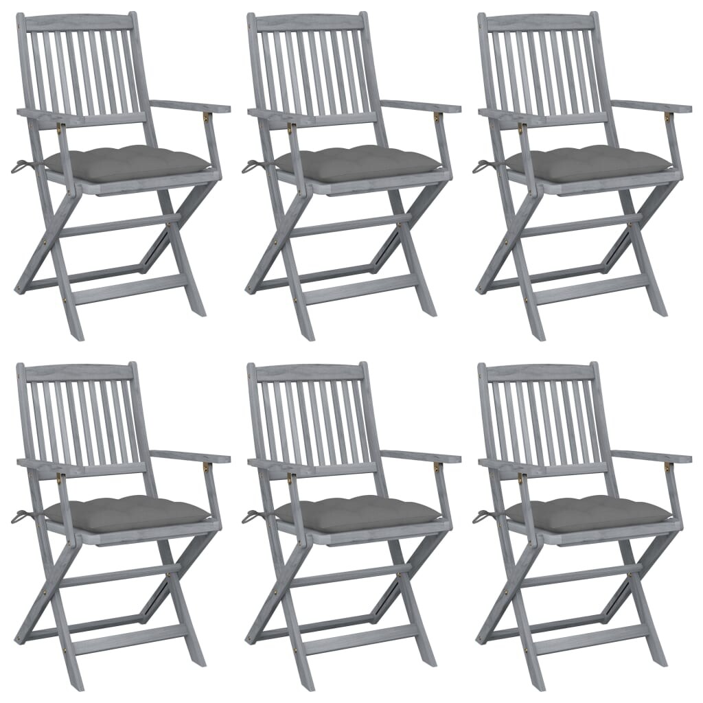 vidaXL Klappbare Gartenstühle 6 Stk. mit Kissen Massivholz Akazie - Gartenstuhl - Gartenstühle - Klappstuhl - Klappstühle