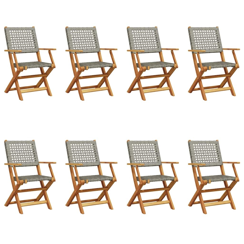 vidaXL Gartenstühle 8 Stk., Gartenstuhl mit Armlehnen, Klappstuhl für Garten Balkon Terrasse, Stuhlset Gartenmöbel, Grau Poly Rattan Massivholz Akazie