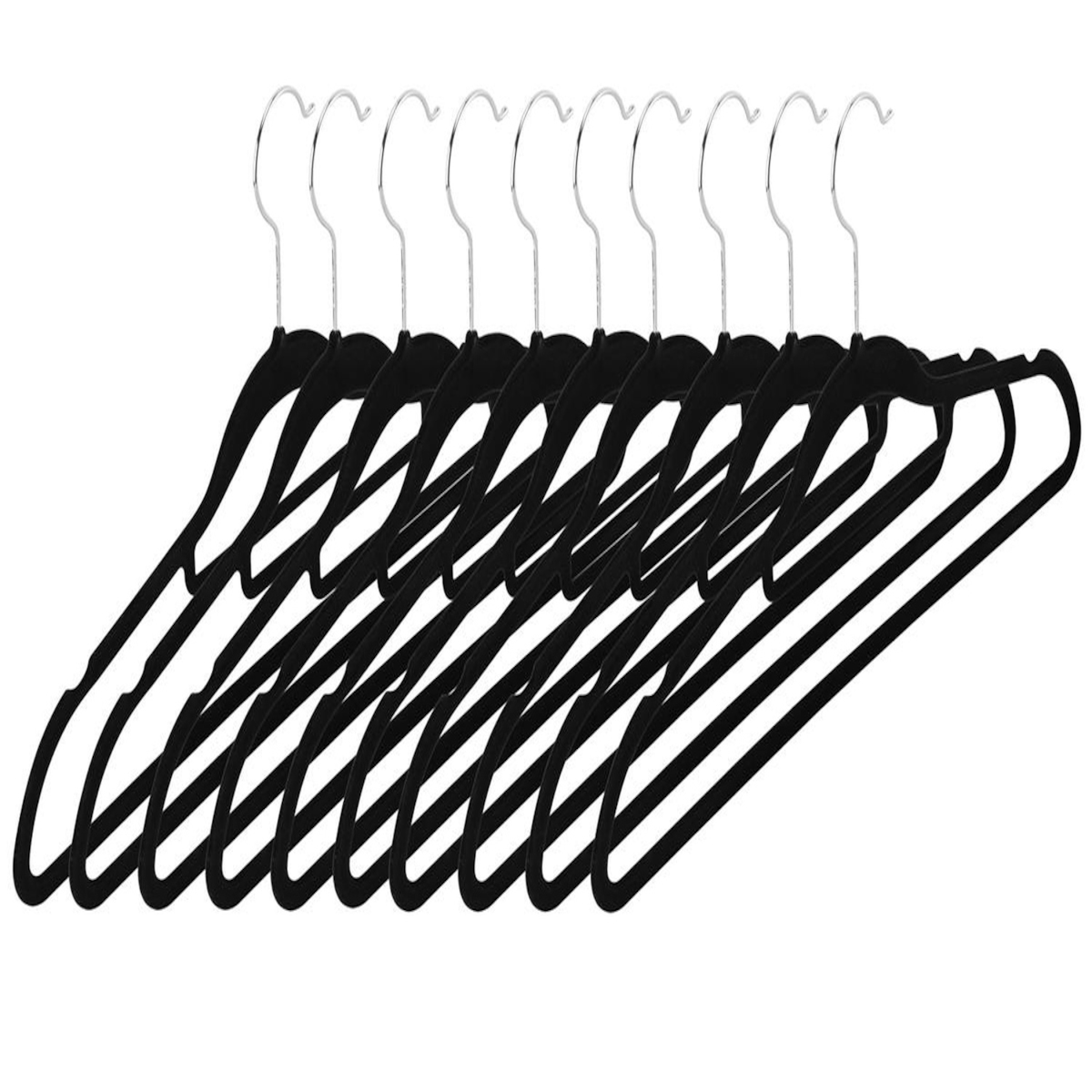Intirilife Kleiderbügel in SAMT SCHWARZ - 10 Stück - 41 x 0.5 x 22 cm aus Kunststoff und Metall mit rutschfestem Samtüberzug und Hosenstange
