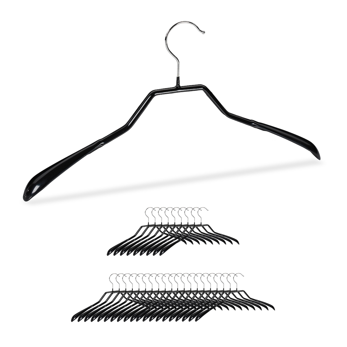Relaxdays Klammerbügel, 10er Set, Kleiderbügel für Kostüme, gummiert aus Metall, rutschfest, platzsparend, 42 cm, schwarz